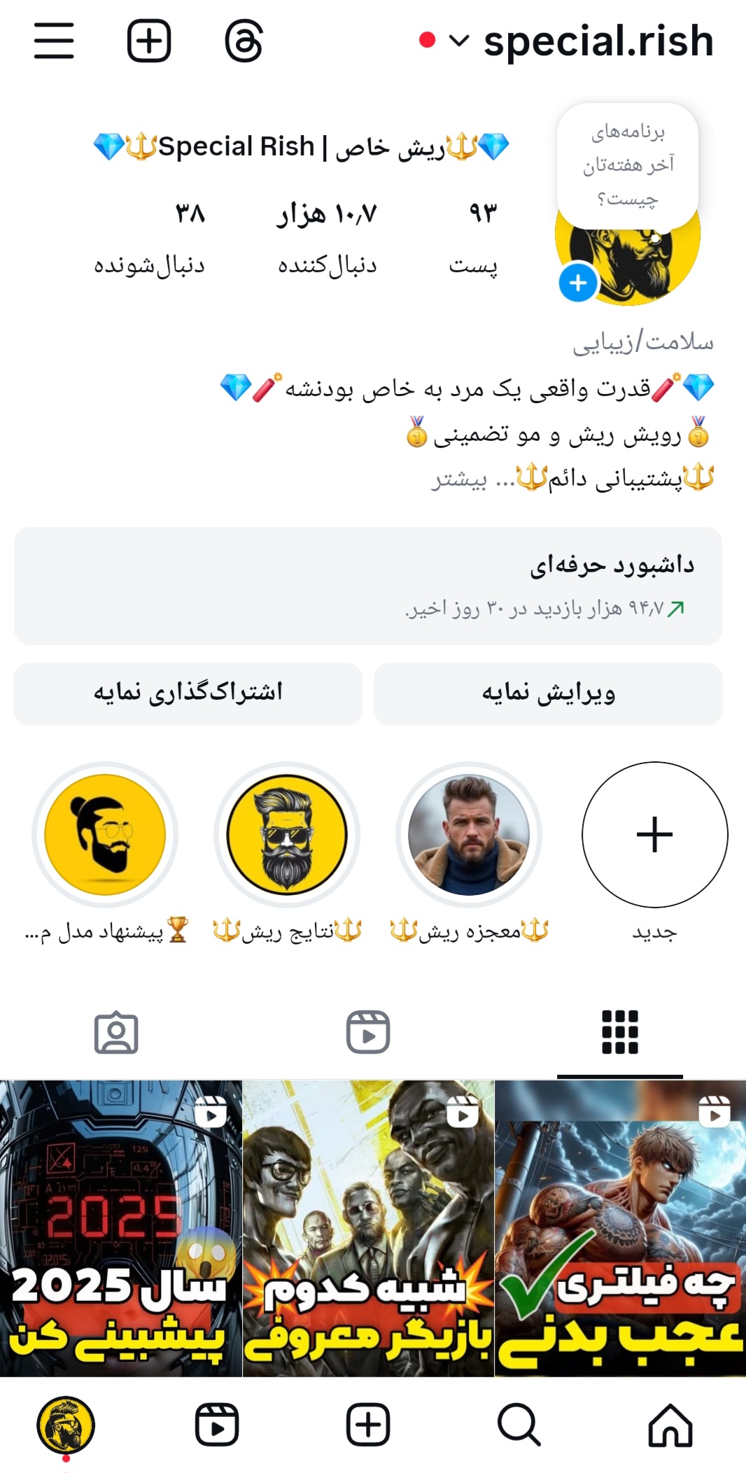 محبوبیت بالای موضوع «مدل مو و ریش مردانه» و کیفیت محتوا باعث شد این پیج ظرف چند روز