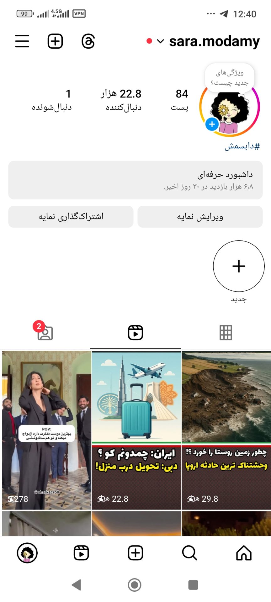 - تعداد فالوور: بیش از ۲۲ هزار نفر (ریال، ایرانی و فعال)